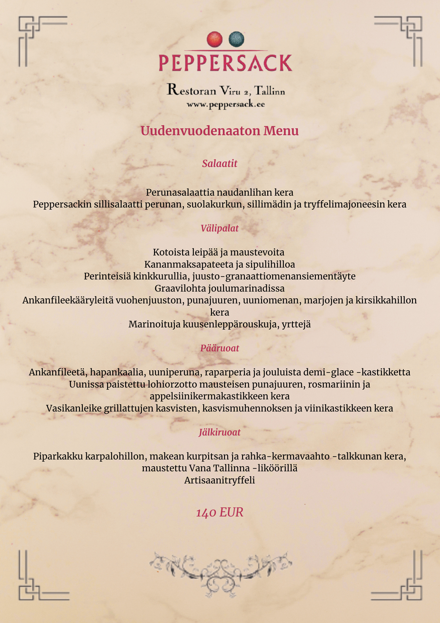 Furthermore, our guests will be treated to an engaging program of entertainment, commencing with Peppersack’s famous sword fighters show, followed by an enchanting Dmitri Zorin magicians performance that is sure to captivate all in attendance. The evening will be accompanied by the Estonian Traditional Folk Show, adding a harmonious touch to this festive occasion. At the end of the evening there will be a surprise for our guests.