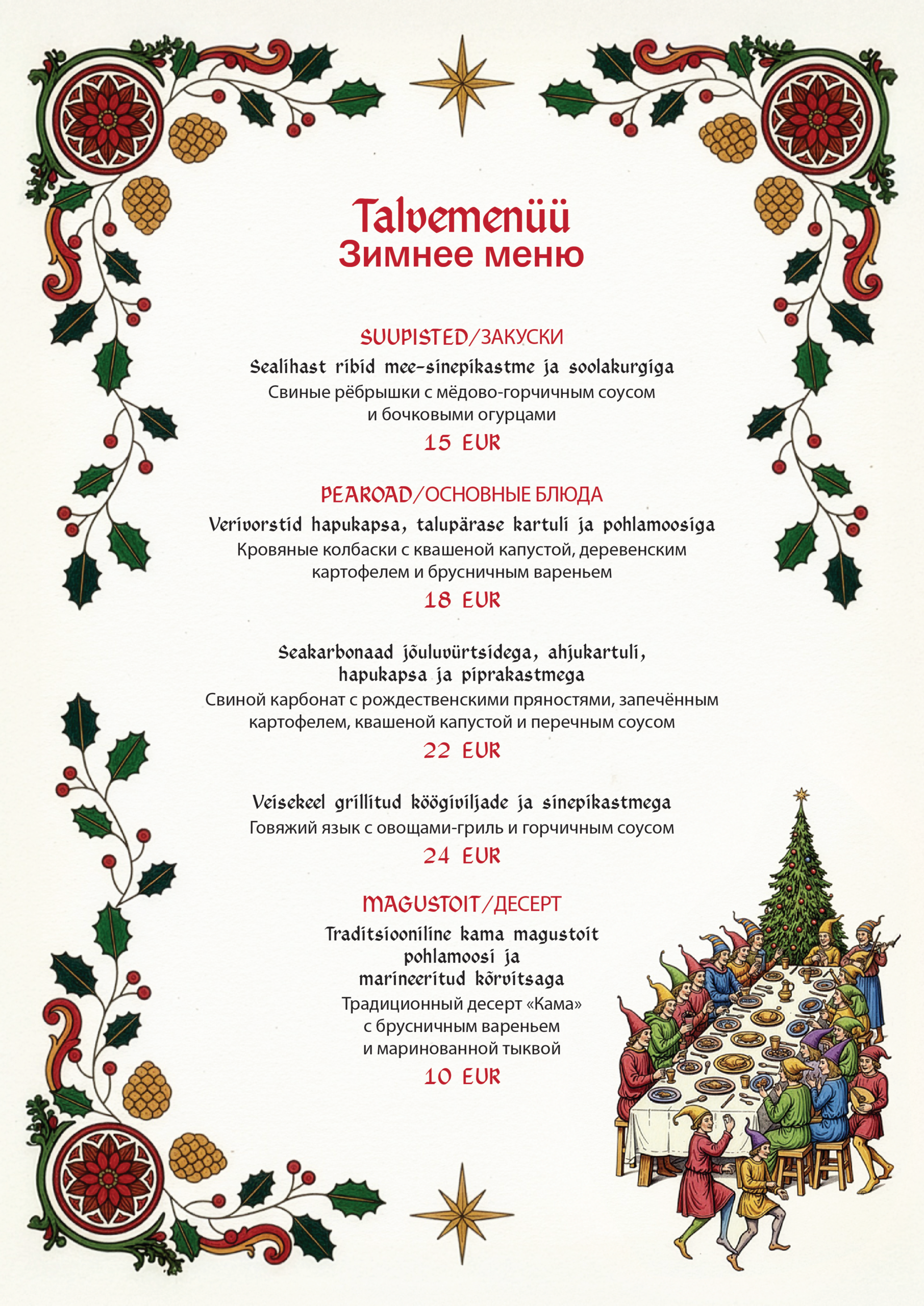 Restoran: E-N 17:00-23:00, R-P 12:00-23:00 +372 646 6996